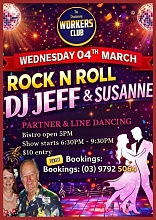 Wednesday Rock n Roll is back at the Dandenong Workers Club with DJ JEFF & SUSANNE next Wed 25th Feb